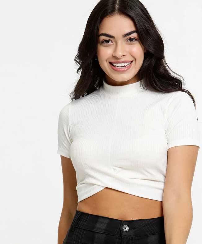 Blusa Feminina Cropped Canelada Manga Curta